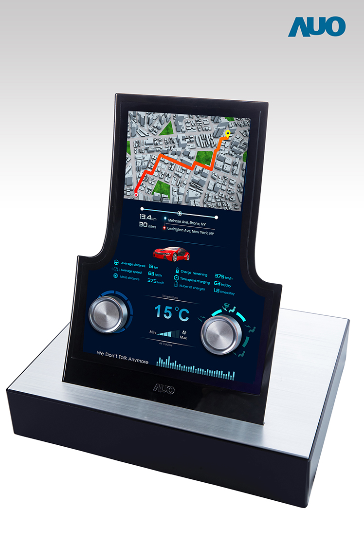 12.3 寸 Full HD LTPS 显示屏同样具备 1000 nits 高亮度,搭载内嵌式触控技术,整合驱动与触控 IC 于显示屏制程,使显示屏厚度降低,为中控台创造更多机构设计空间。应用于抬头显示器的 3寸 LTPS 显示屏具有高穿透率、1200:1 高对比度度,以及 297 PPI 高画素密度。液晶最高可耐受到 110°C 的高温 (TNI) 而不液化,在阳光高温下维持优异稳定的显示效果。